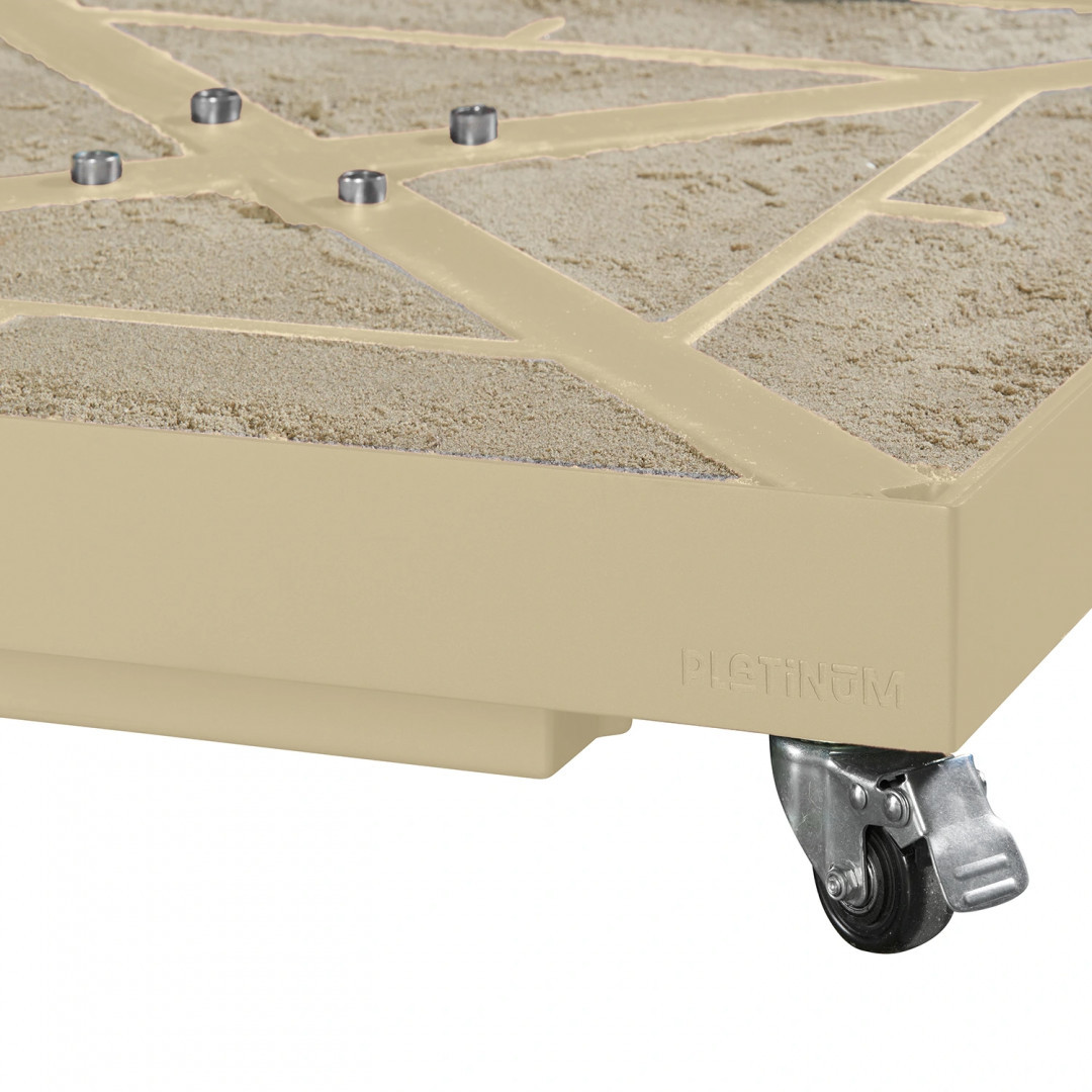 Яркое солнце может сорвать ваши планы и отбить желание проводить время на открытом воздухе. Разместив садовый зонт в саду или на террасе, вы получите не только защиту от переменчивой погоды, но и стильное дополнение к вашему пространству. Разместите свой садовый зонт там, где вам нравится, и наслаждайтесь прекрасной погодой, несмотря на палящее солнце! Основание Керамика (Ceramic) весом 90 кг – это прочное основание для зонта, для заполненния и утяжеленние песком. Керамическое покрытие долговечно, устойчиво к погодным условиям, царапинам и выцветанию. Поворотные колеса с тормозами облегчают перемещение основания.