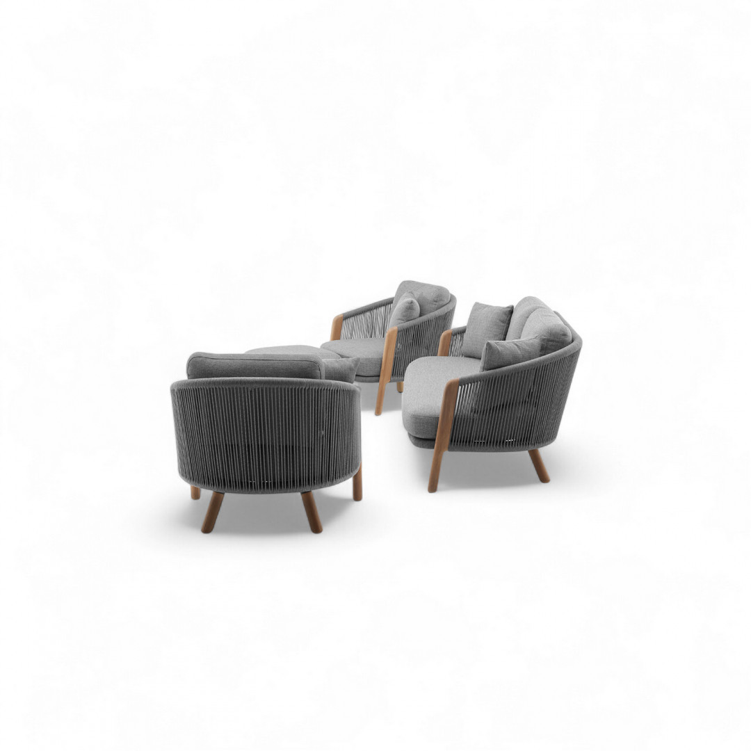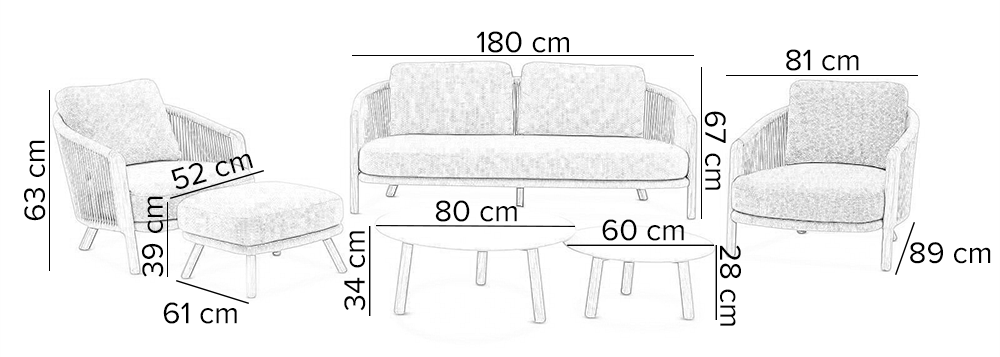 Садовый комплект мебели HAVEN идеально дополнит любой сад или патио, создавая атмосферу расслабления и спокойствия. Идеально подходит для тех, кто хочет насладиться моментами отдыха на лоне природы, а также служит элегантным декоративным элементом для более торжественных приемов.