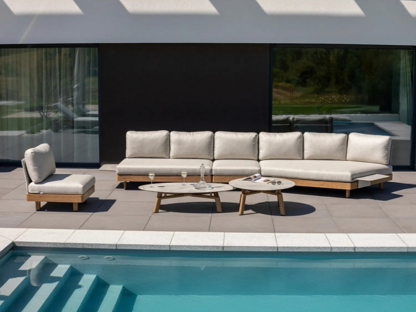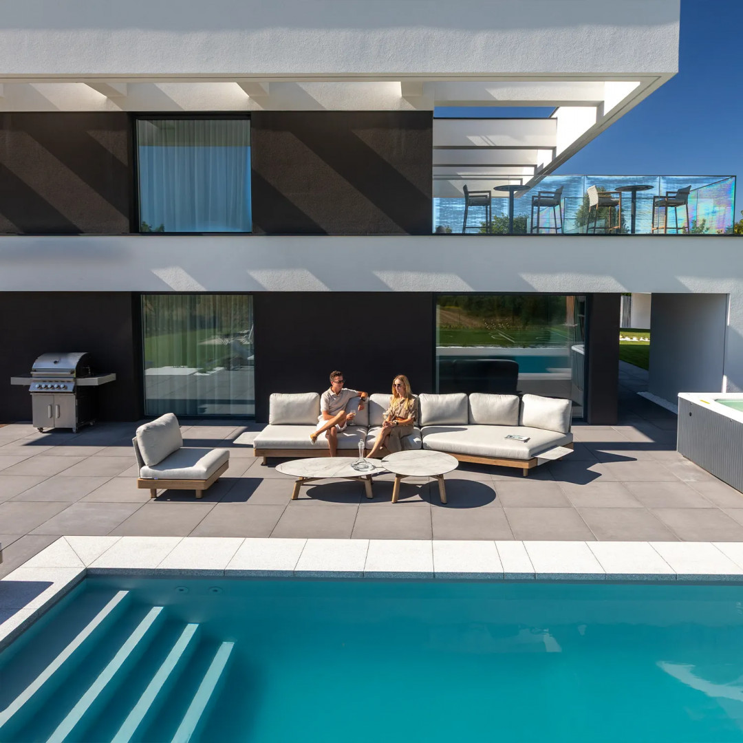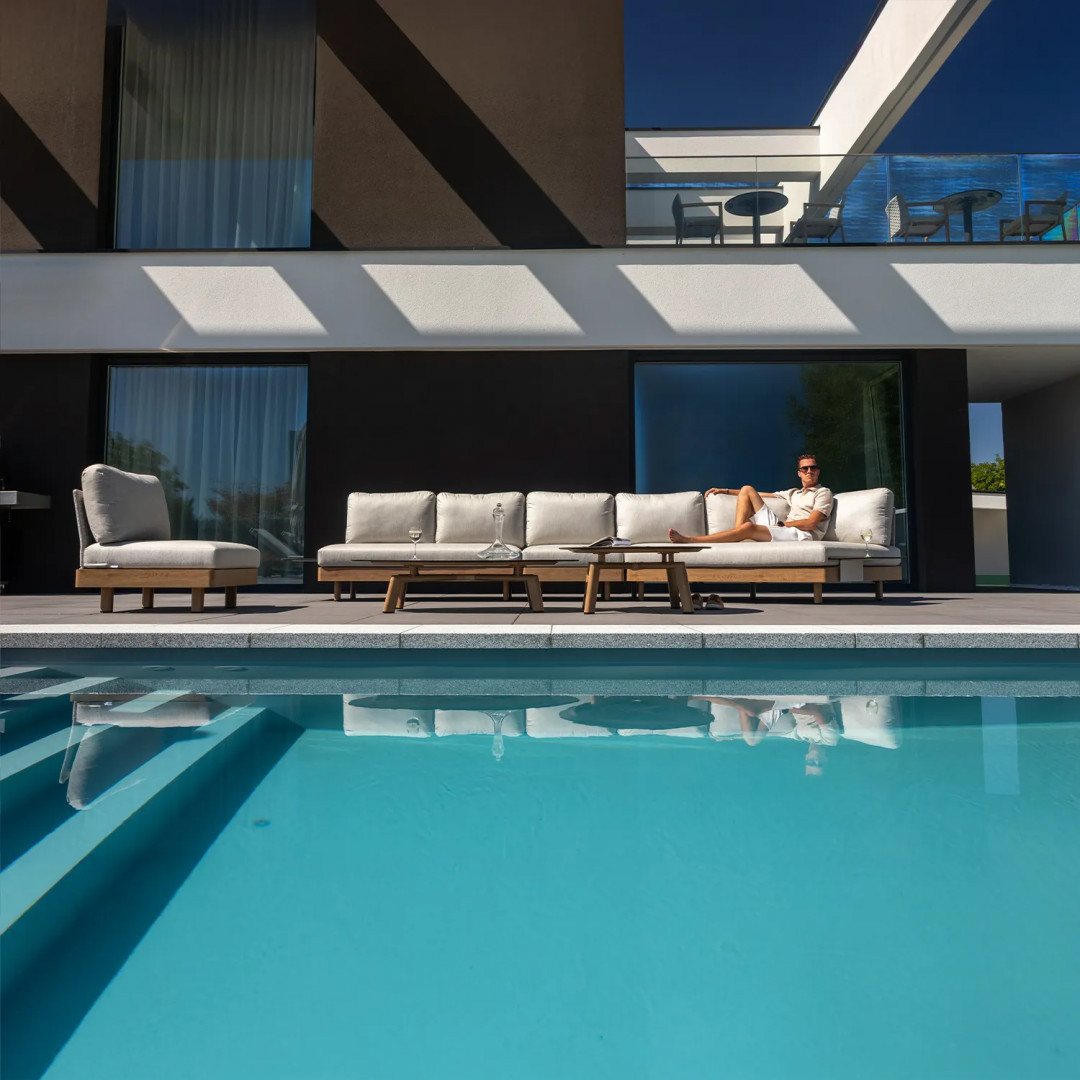Откройте для себя новое измерение элегантности и комфорта с роскошным комплектом садовой мебели LOUNGE II от Couture Jardin – коллекцией, созданной с учетом самых взыскательных потребностей пользователей. Этот эксклюзивный комплект для отдыха, доступный в левостороннем и правостороннем вариантах, идеально дополнит просторные террасы, стильные сады и современные балконы. Каждый предмет впечатляет продуманным дизайном, модульной функциональностью и исключительным комфортом, создавая пространство, идеально подходящее для отдыха и встреч с близкими. Особого внимания заслуживает алюминиевый каркас с порошковым покрытием, отделанный текстурой, имитирующей натуральное дубовое дерево. Это уникальное решение сочетает в себе прочность и износостойкость металла с эстетикой и теплотой благородного дерева – без необходимости в уходе. Результат? Мебель, которая одновременно современна, изысканна и невероятно практична для использования на открытом воздухе.