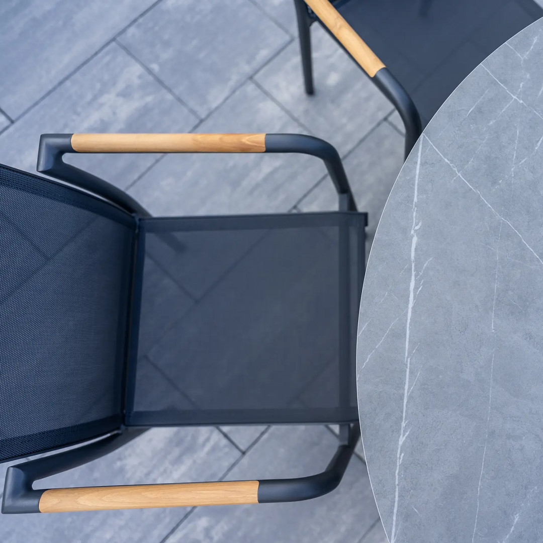 Комплект LUGO антрацит со стульями SOLLER из тикового дерева сочетает в себе вневременную элегантность, практичность и высокое качество изготовления. Он идеально подходит для семейных завтраков и вечерних посиделок за бокалом вина. Мебель проста в уходе, устойчива к погодным условиям и рассчитана на долгие годы использования.