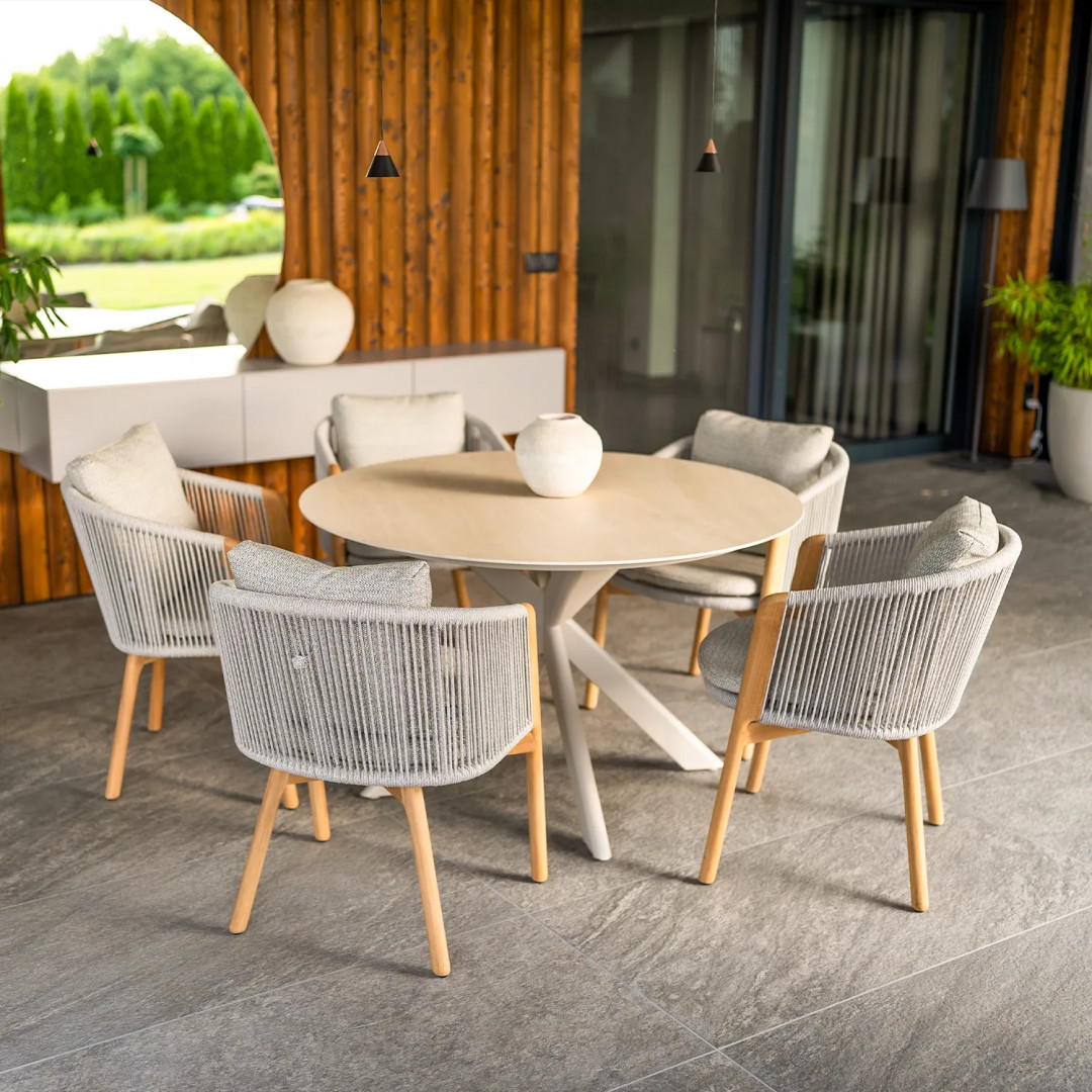 Нет ничего приятнее, чем разделить трапезу и беседу на террасе или в саду. Комплект LUGO MOKKA с пятью стульями HAVEN из тикового дерева — идеальный выбор для тех, кто ценит сочетание стиля, долговечности и комфорта. Современный дизайн, прочные материалы и универсальная цветовая палитра делают его прекрасным дополнением к любому открытому пространству.