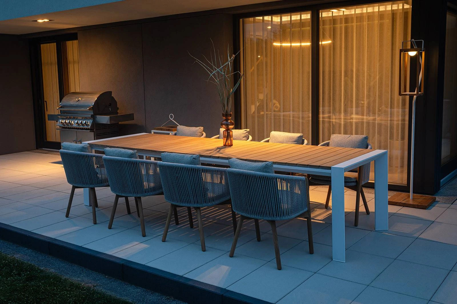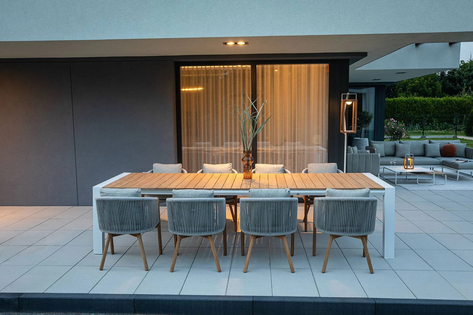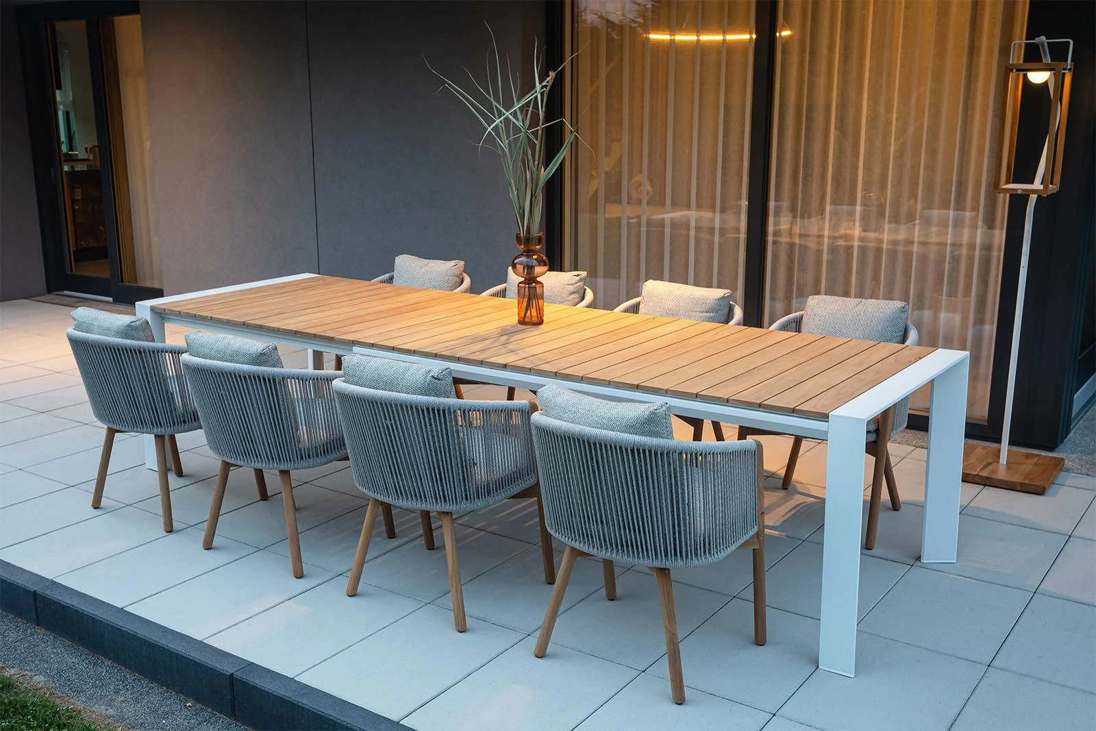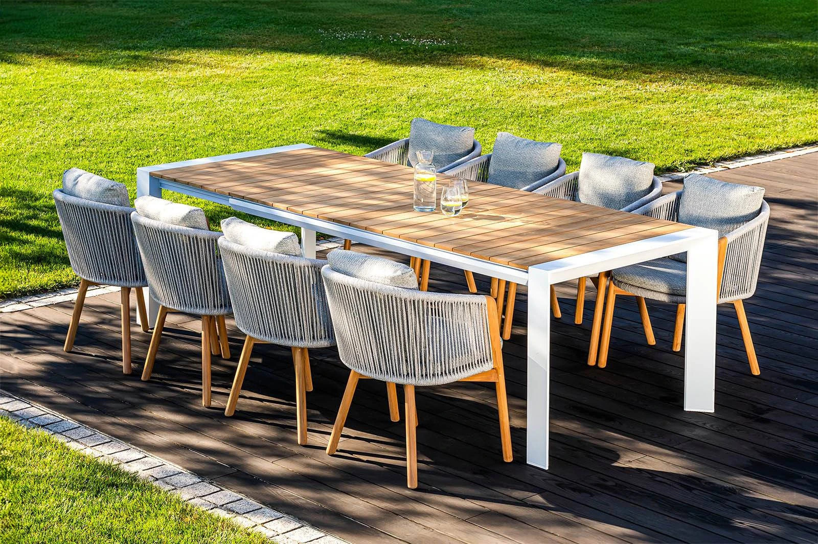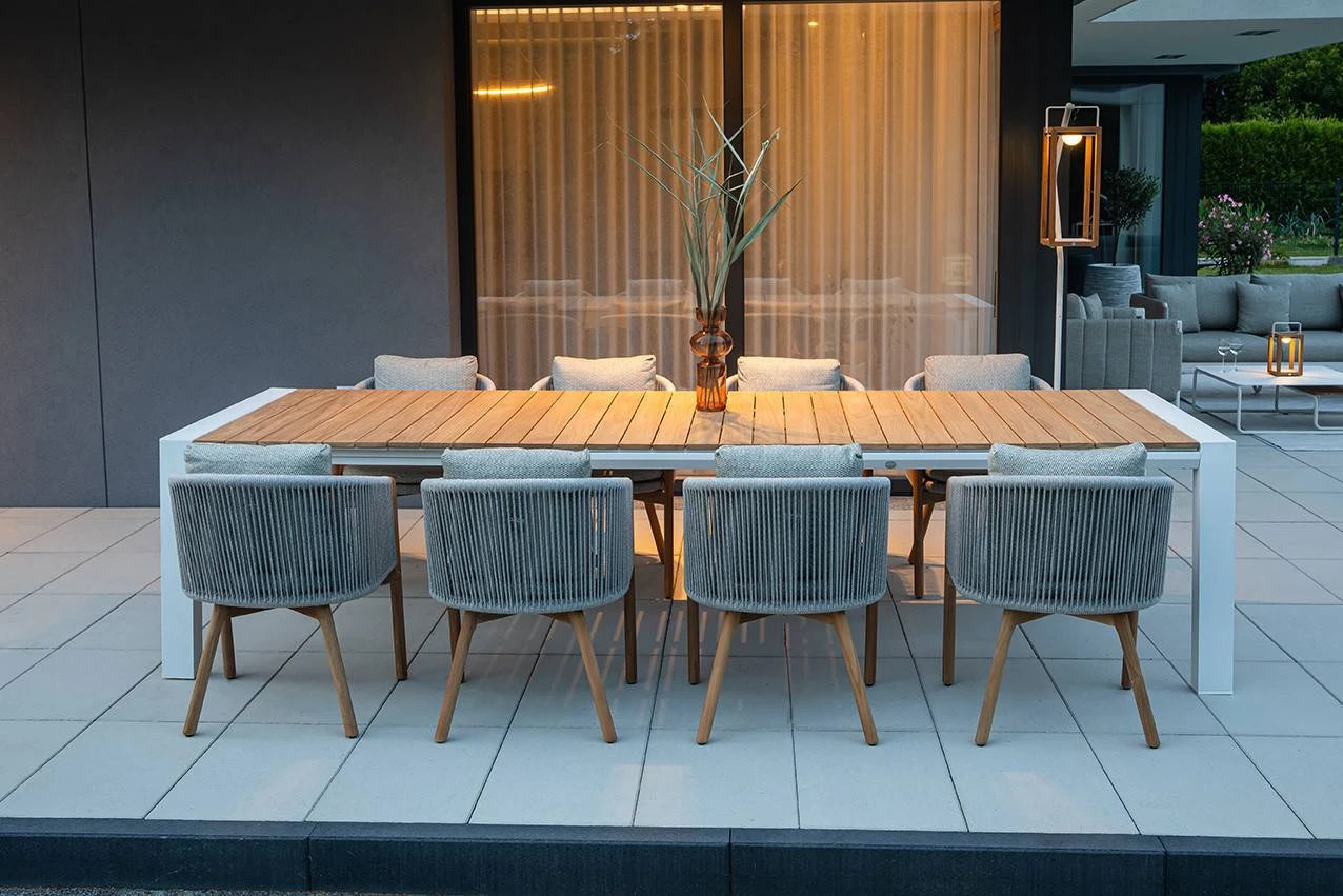 Представляем уникальный садовый комплект "MURO XVII", сочетающий в себе элегантность и современность, который украсит любое открытое пространство. Комплект "MURO XVII" – идеальный выбор для тех, кто ищет роскошь и комфорт на своей террасе или в саду. Элегантный стол MURO и шесть удобных белых стульев HAVEN создают неповторимую атмосферу, которая делает каждый момент на открытом воздухе незабываемым.