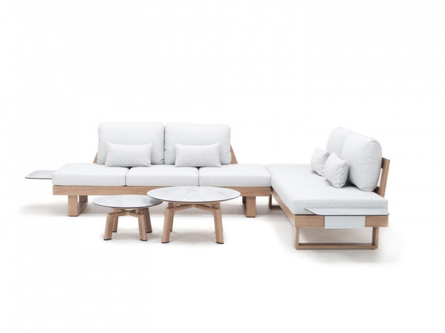 Садовый комплект мебели ВИНГС (WINGS) — это синоним современной элегантности. Геометрические формы диванов в сочетании с изящными линиями столиков Lounge создают гармоничную и эксклюзивную композицию. Алюминий с порошковым покрытием под дуб добавляет тепла и уюта, а элегантно отделанные столешницы подчеркивают престижный характер всего комплекта.