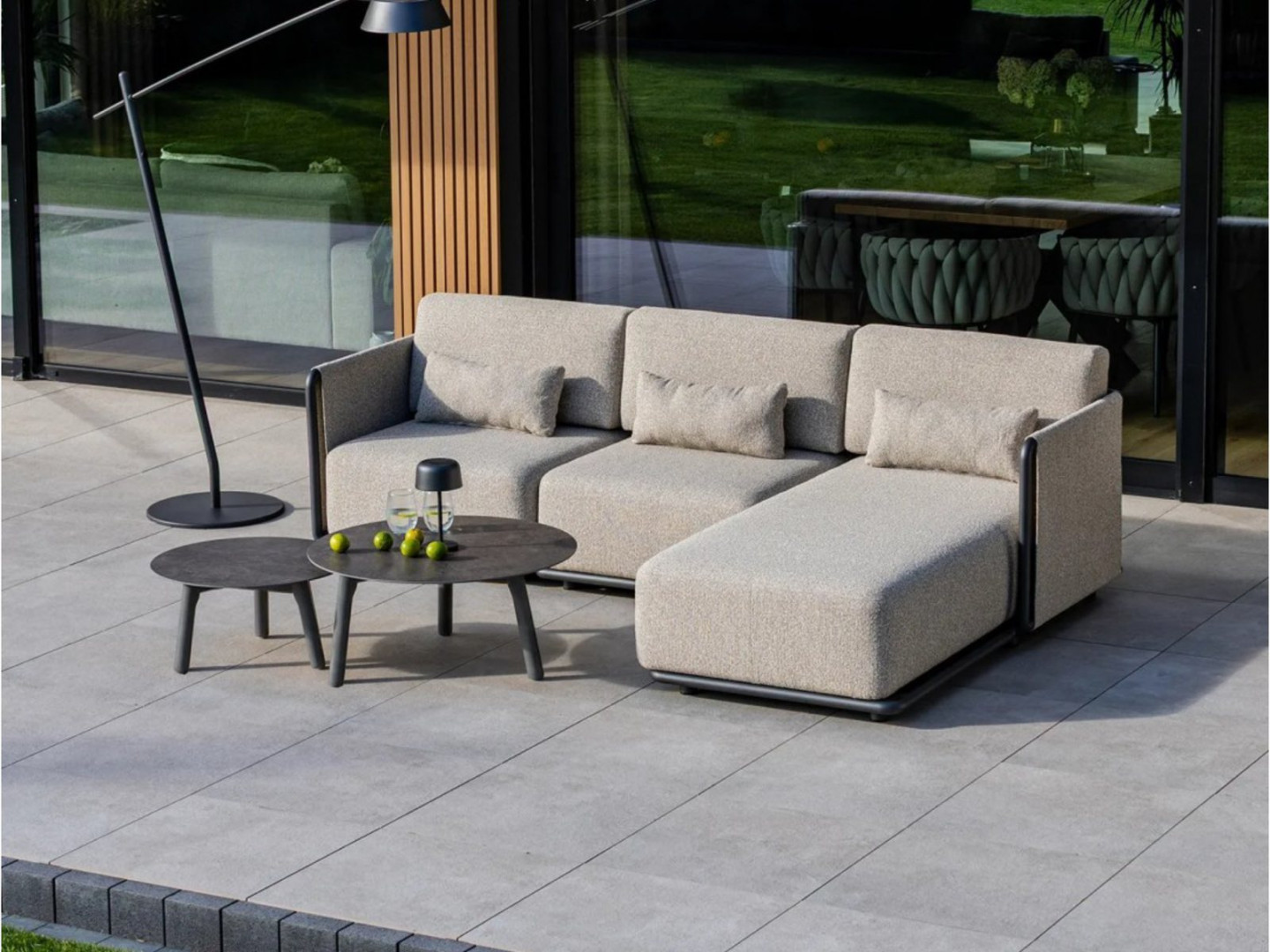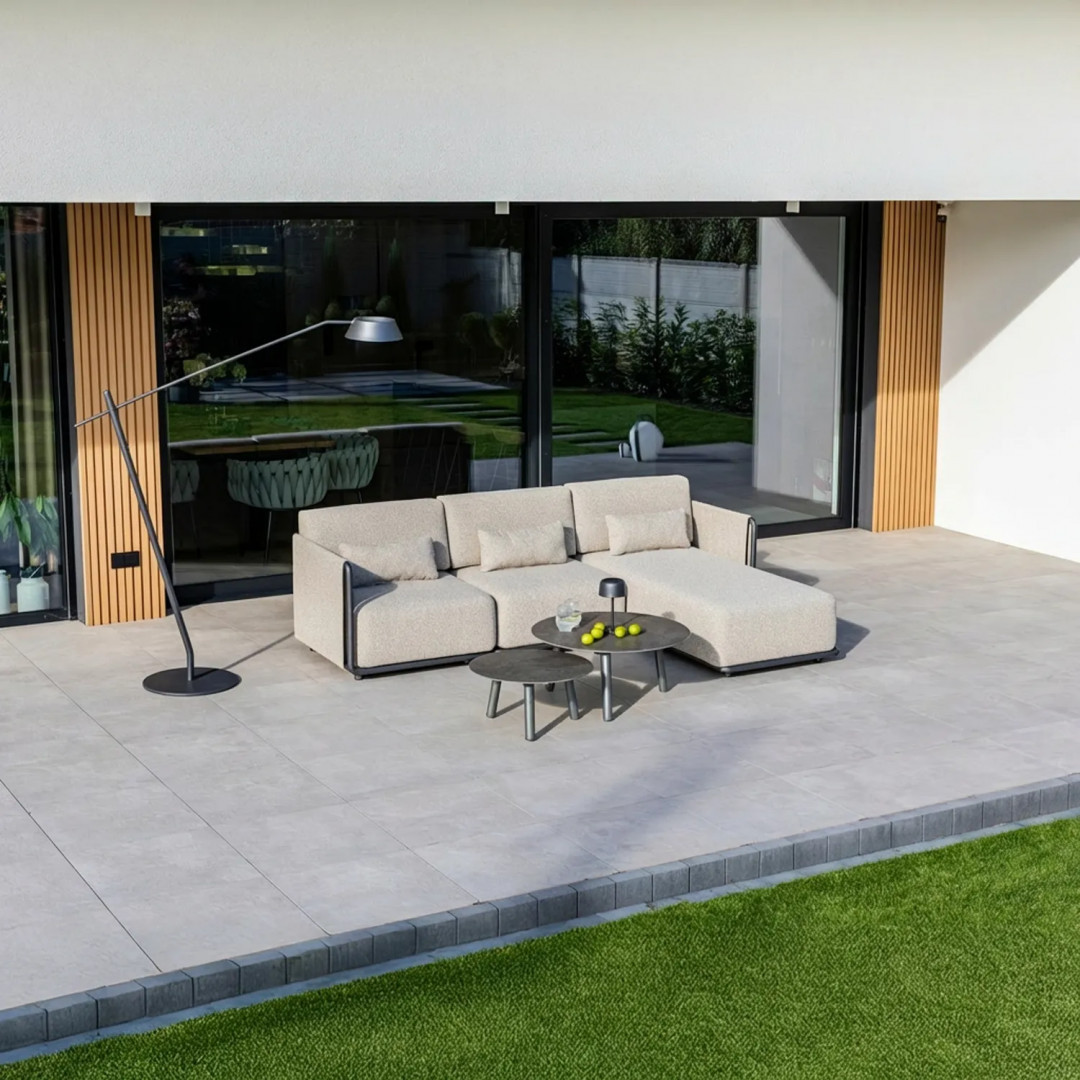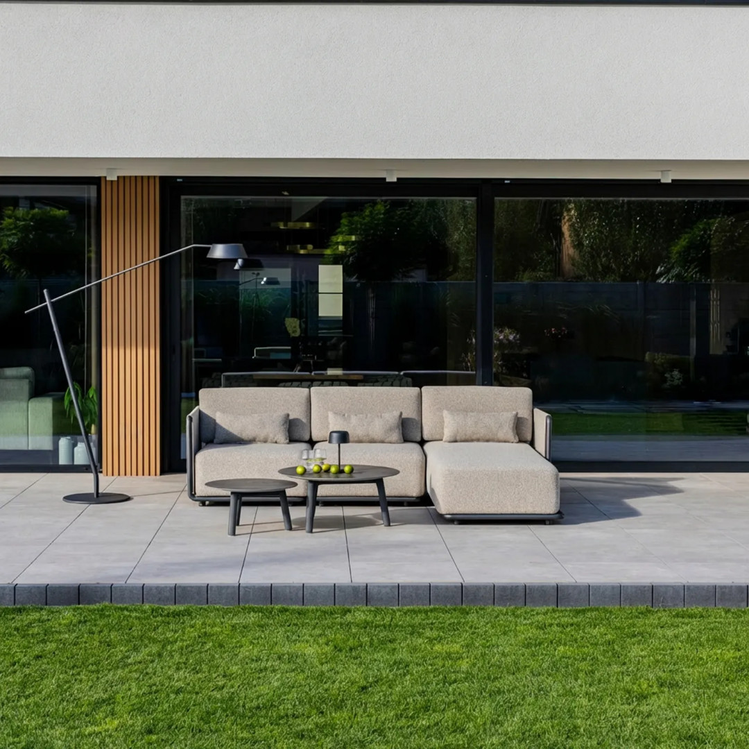 Комплект садовой мебели ZEN I – это модульный комплект для создания угловых зон отдыха на открытом воздухе. Комплект состоит из углового дивана, центрального дивана, левого шезлонга и журнальных столиков, что позволяет создать удобную планировку больших террас и зон отдыха.