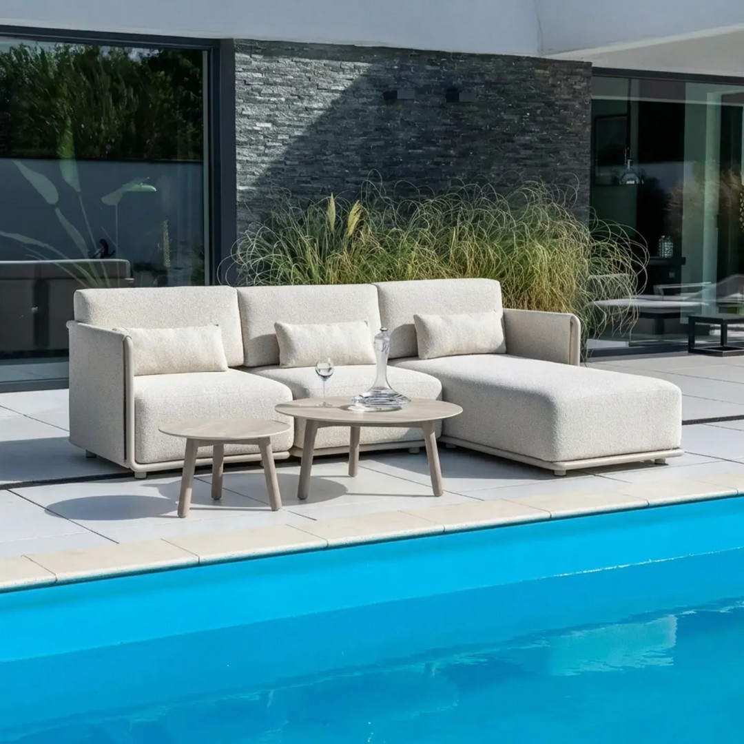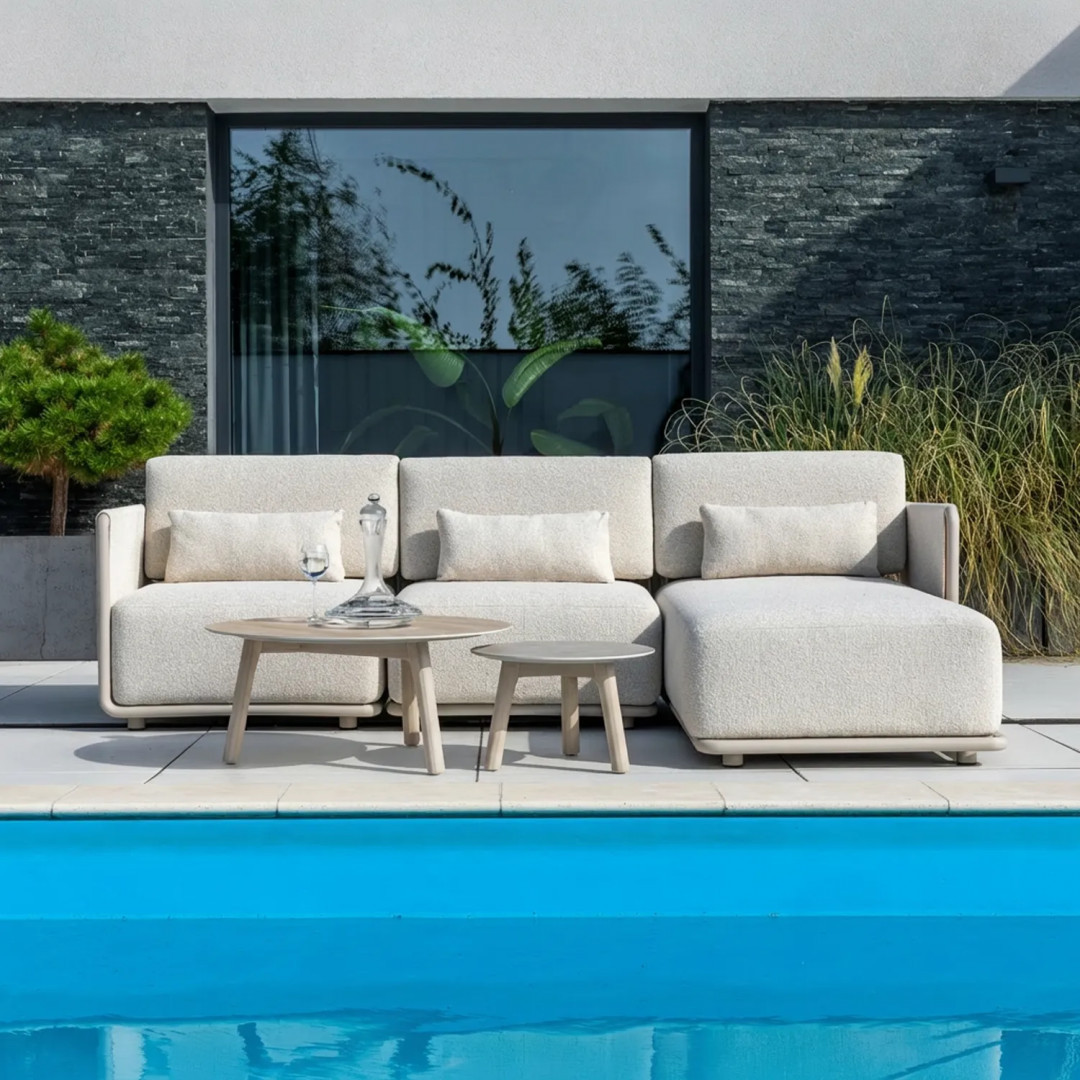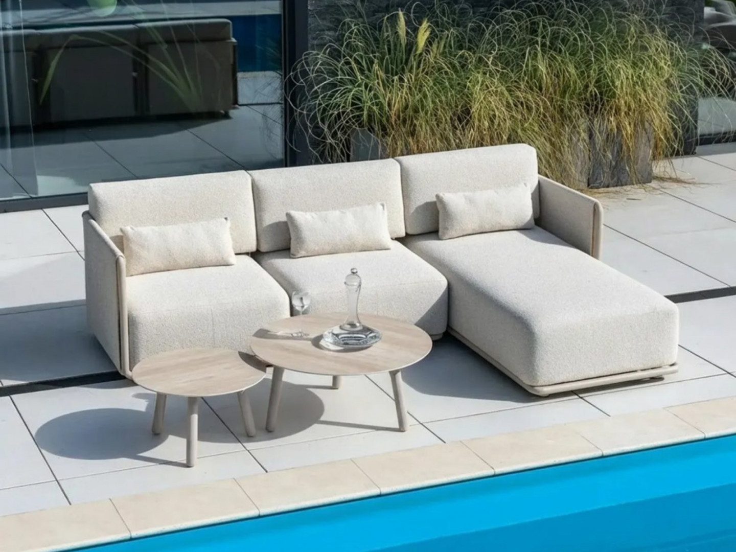 Комплект садовой мебели ZEN I – это модульный комплект для создания угловых зон отдыха на открытом воздухе. Комплект состоит из углового дивана, центрального дивана, левого шезлонга и журнальных столиков, что позволяет создать удобную планировку больших террас и зон отдыха.