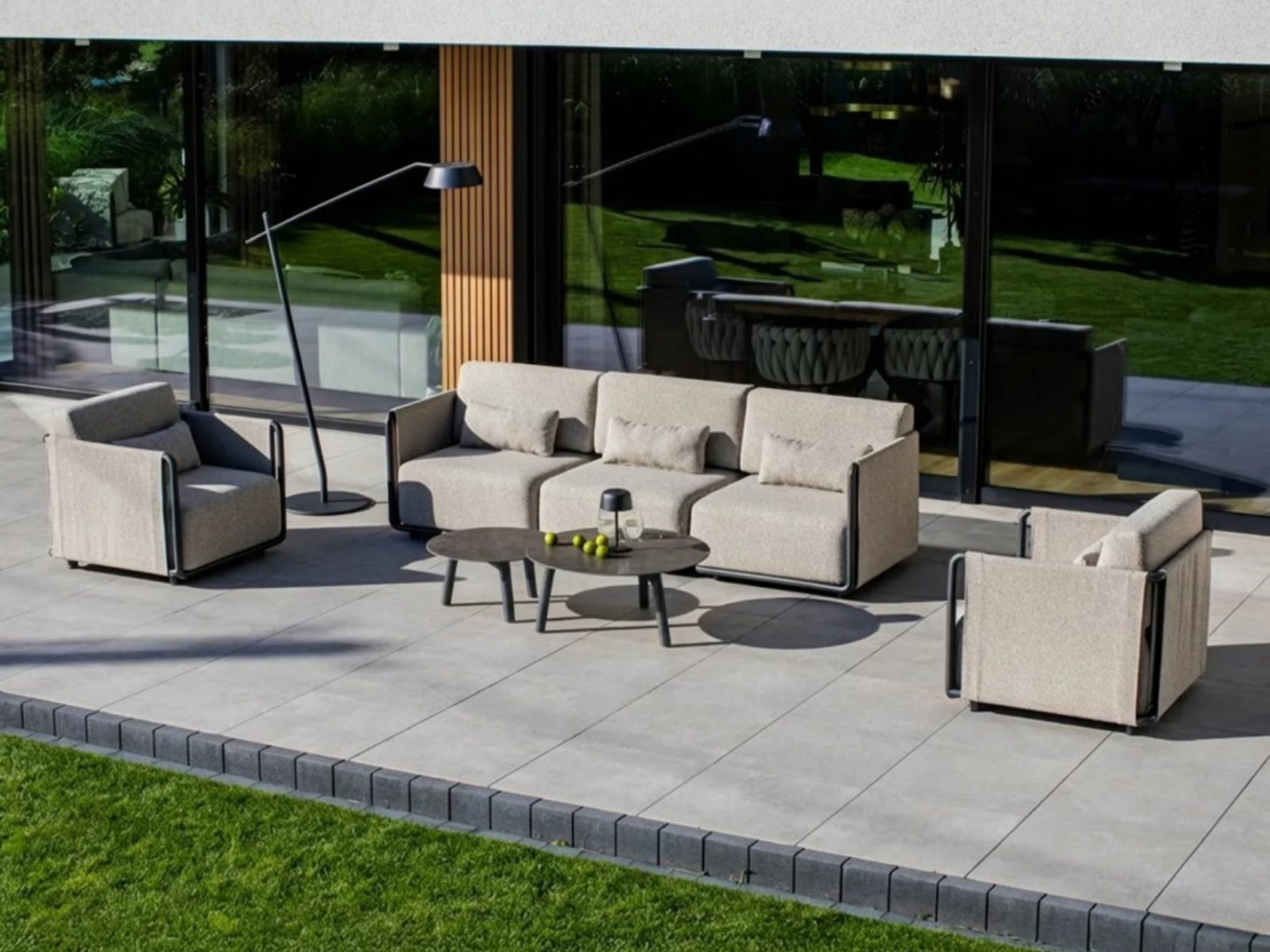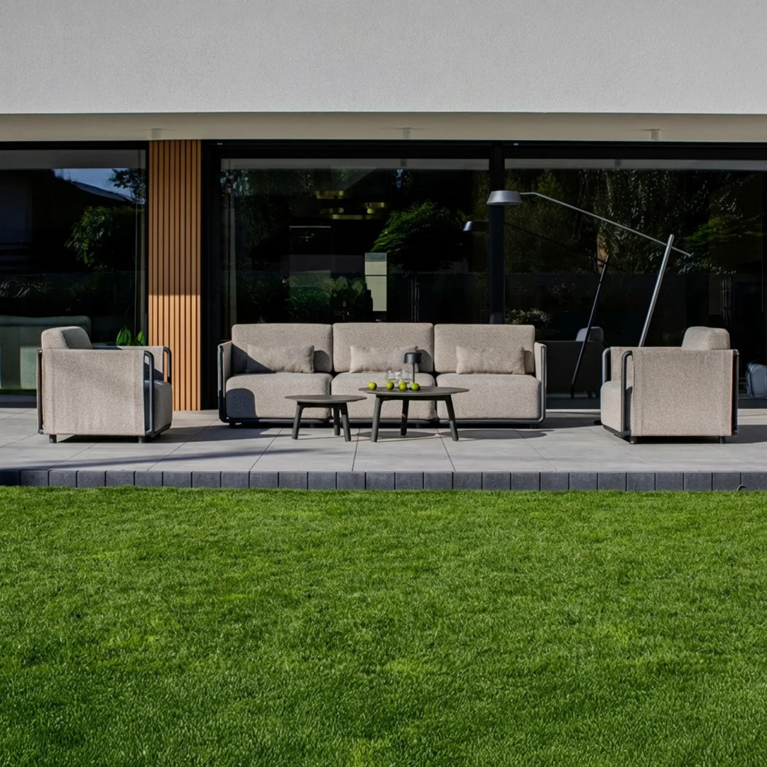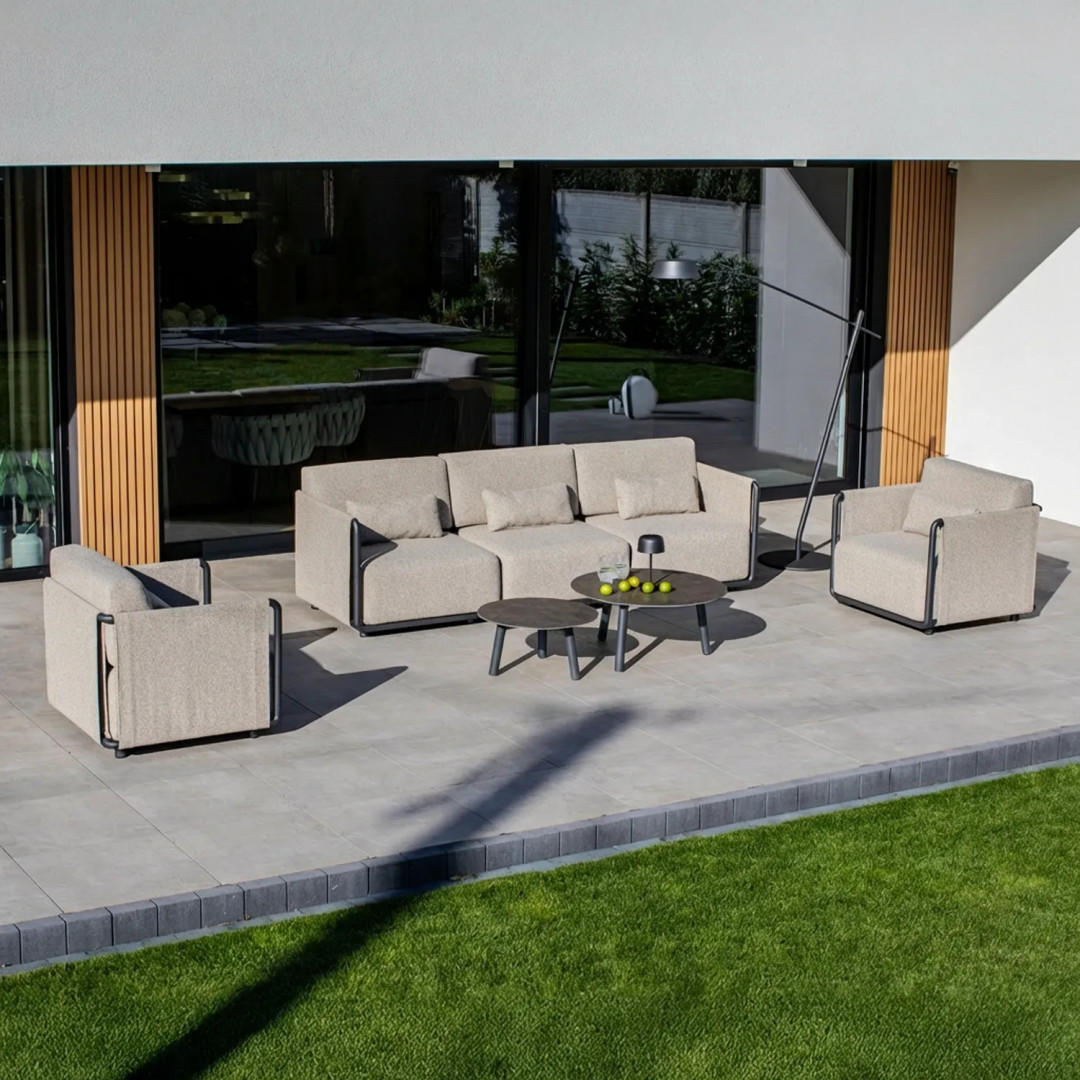 Комплект садовой мебели ZEN III – это обширный комплект для отдыха, предназначенный для неформальных открытых пространств. В комплект входят диван, два кресла и два журнальных столика, что позволяет создать комфортную зону для встреч и отдыха нескольких человек.