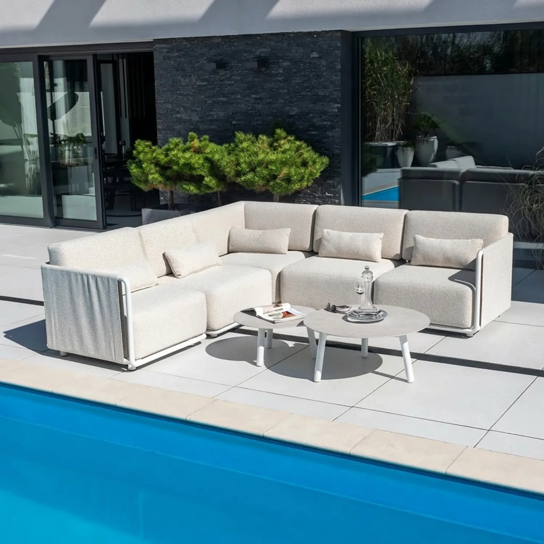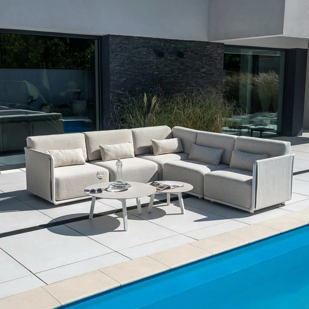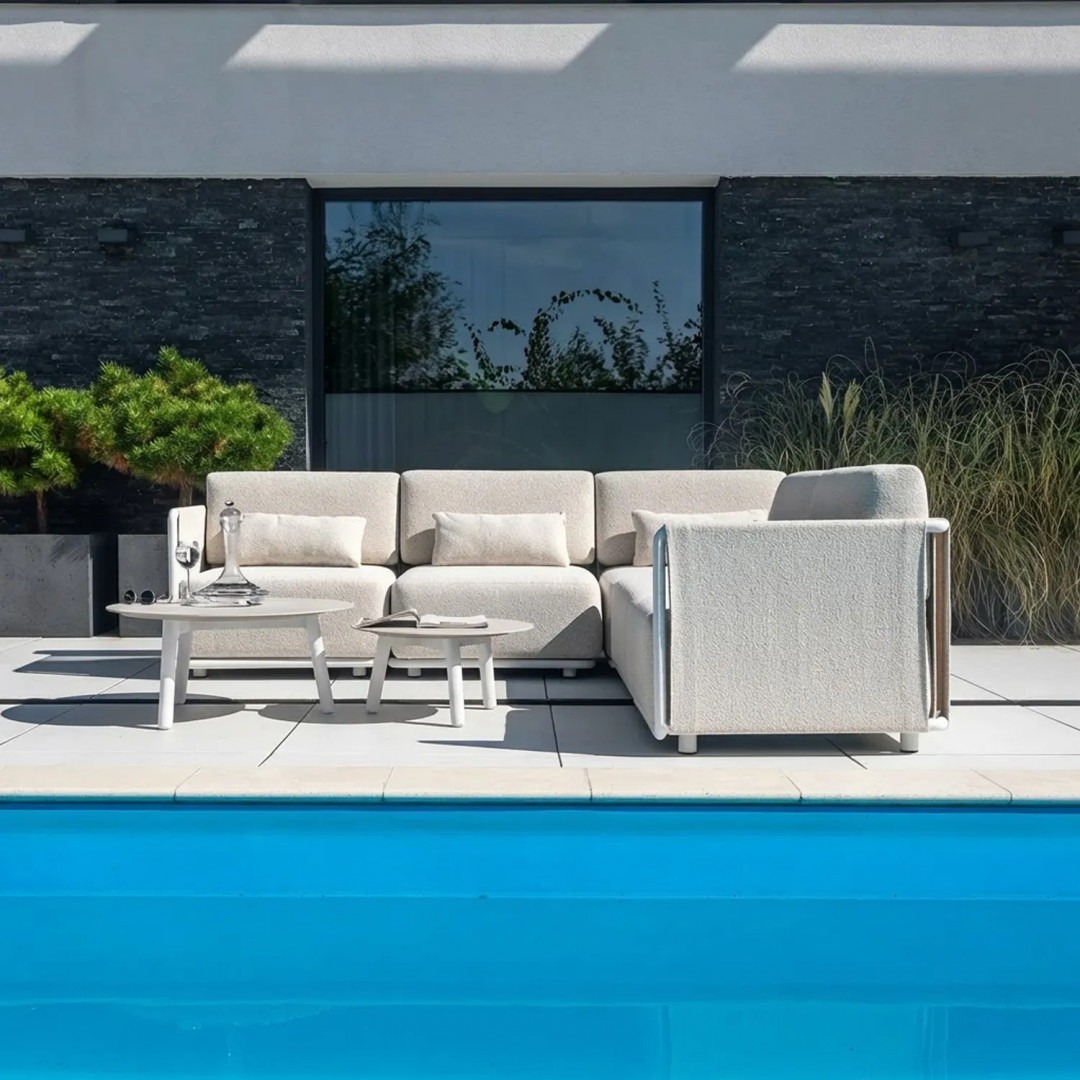 Комплект садовой мебели ZEN IV – это минималистичный набор для отдыха на открытом воздухе, предназначенный для создания уютных зон отдыха. Угловой диван и центральный блок создают гармоничный, компактный дизайн, идеально подходящий для современных террас, патио и зон у бассейна.