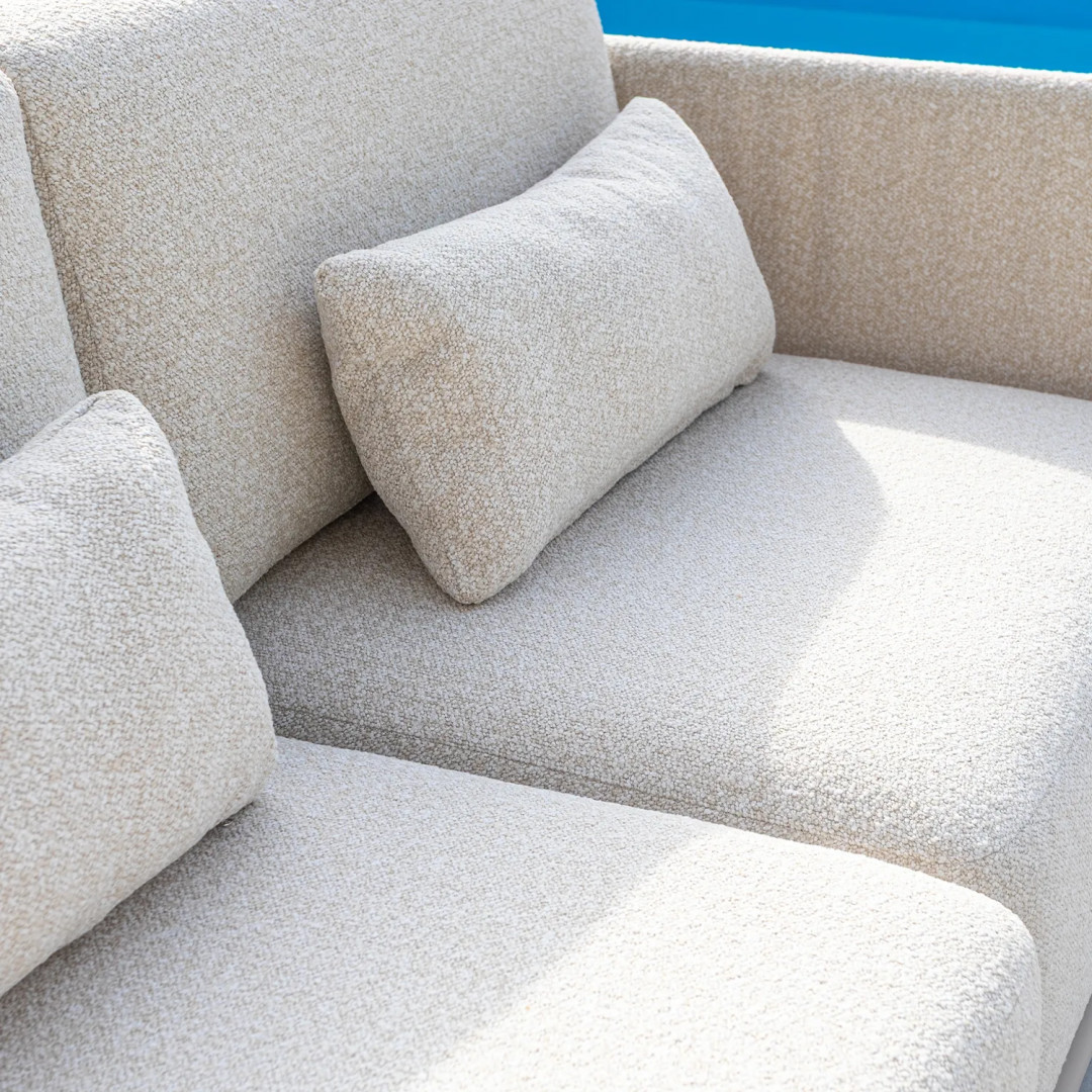 Алюминиевый каркас с порошковым покрытием обеспечивает устойчивость и защиту от непогоды, а мягкие подушки с обивкой из ткани Sunproof предназначены для повседневного использования на открытом воздухе.