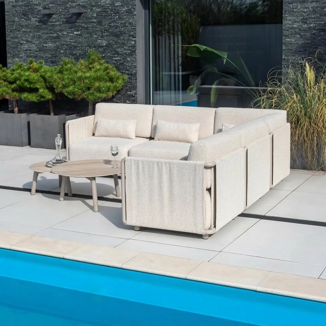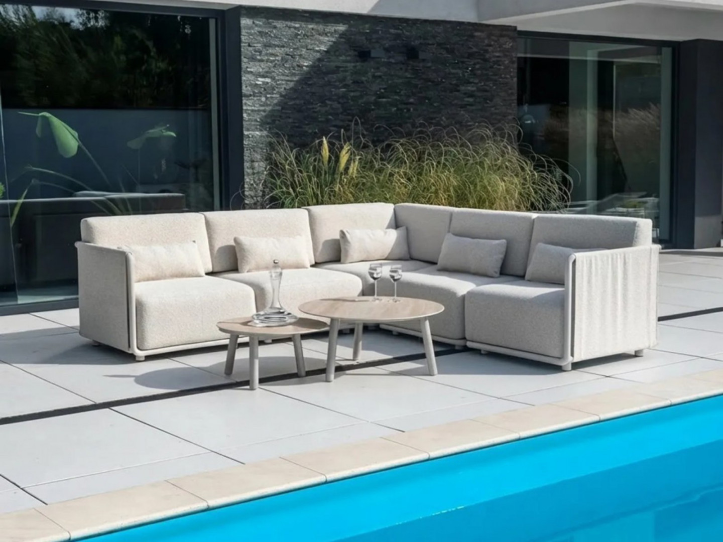 Комплект садовой мебели ZEN IV – это минималистичный набор для отдыха на открытом воздухе, предназначенный для создания уютных зон отдыха. Угловой диван и центральный блок создают гармоничный, компактный дизайн, идеально подходящий для современных террас, патио и зон у бассейна.
