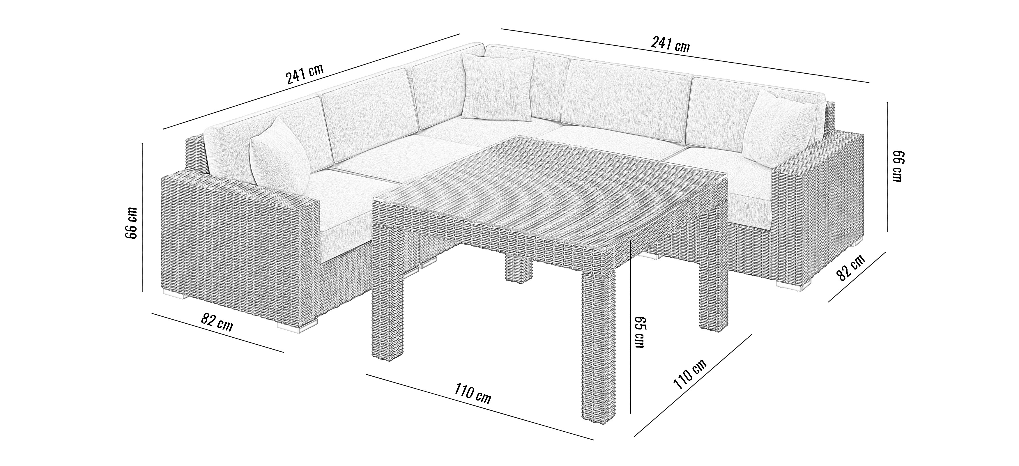 Комплект садовой мебели из техноротанга МИЛАНО III (MILANO III) песок - это предложение, посвященное людям, желающим со вкусом обустроить большие пространства. Благодаря изобилию компонентов, соединяющихся между собой модульно, Вы можете творчески формировать свое окружение. Комплект состоит из стола, двух центральных и трех угловых элементов, из которых Вы можете создать удобный угловой дизайн и которые поместят всех Ваших друзей и семью во время праздничной вечеринки в саду.