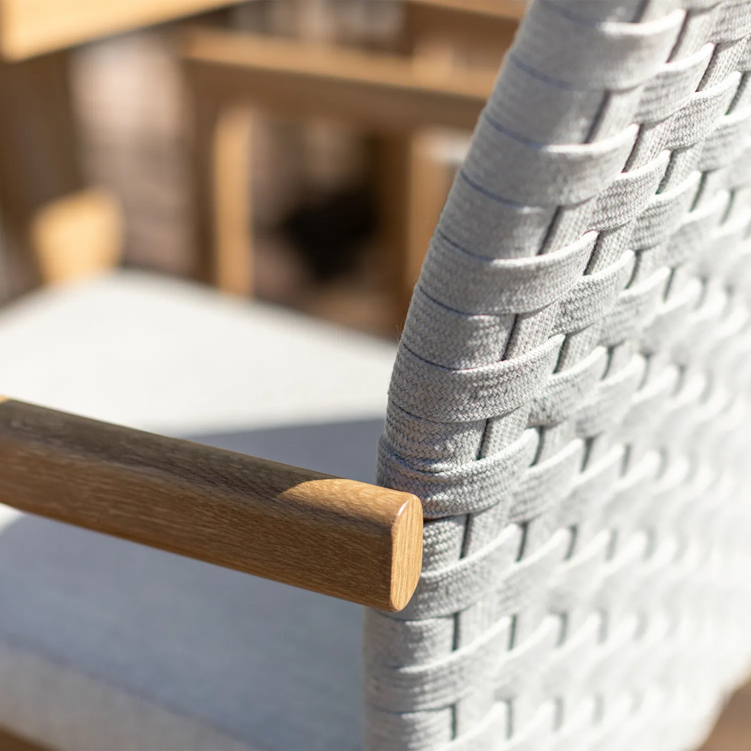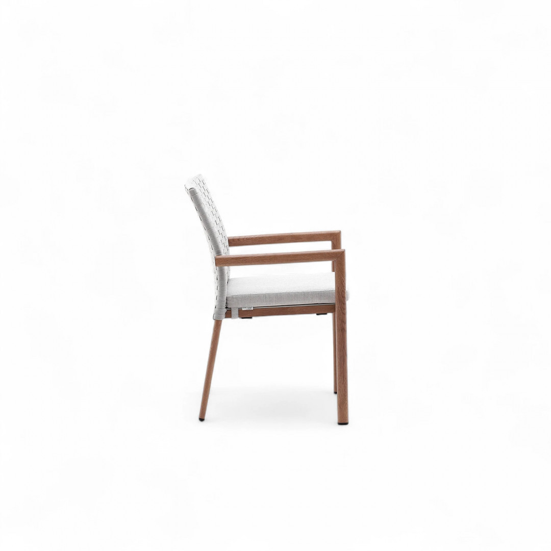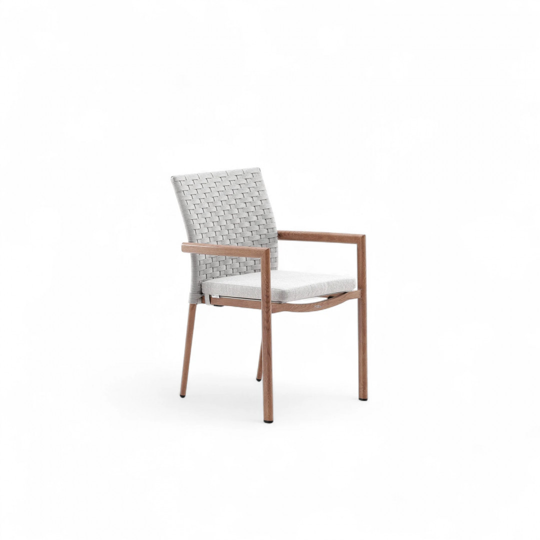Кресло Lounge — квинтэссенция современной элегантности. Простые линии, нежные цвета и тщательно подобранные пропорции придают мебели эксклюзивный характер, идеально дополняющий как минималистичные патио, так и классические сады. Имитация дуба на алюминиевом каркасе подчеркивает естественную красоту комплекта, добавляя тепла и уюта.