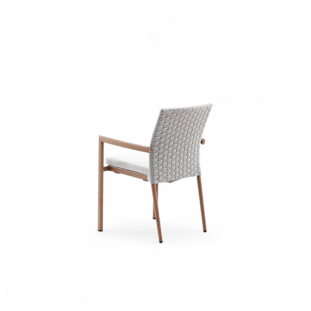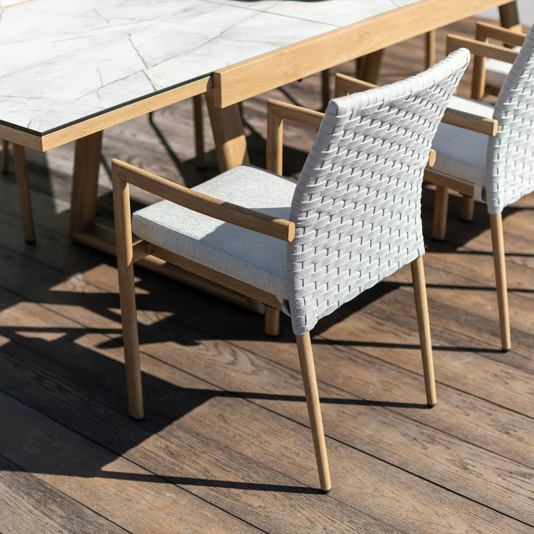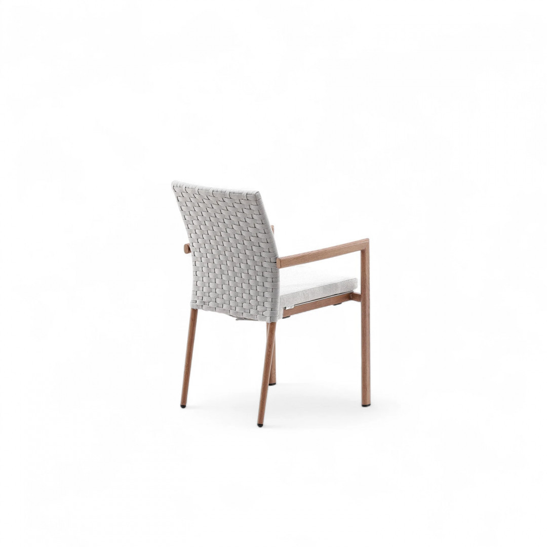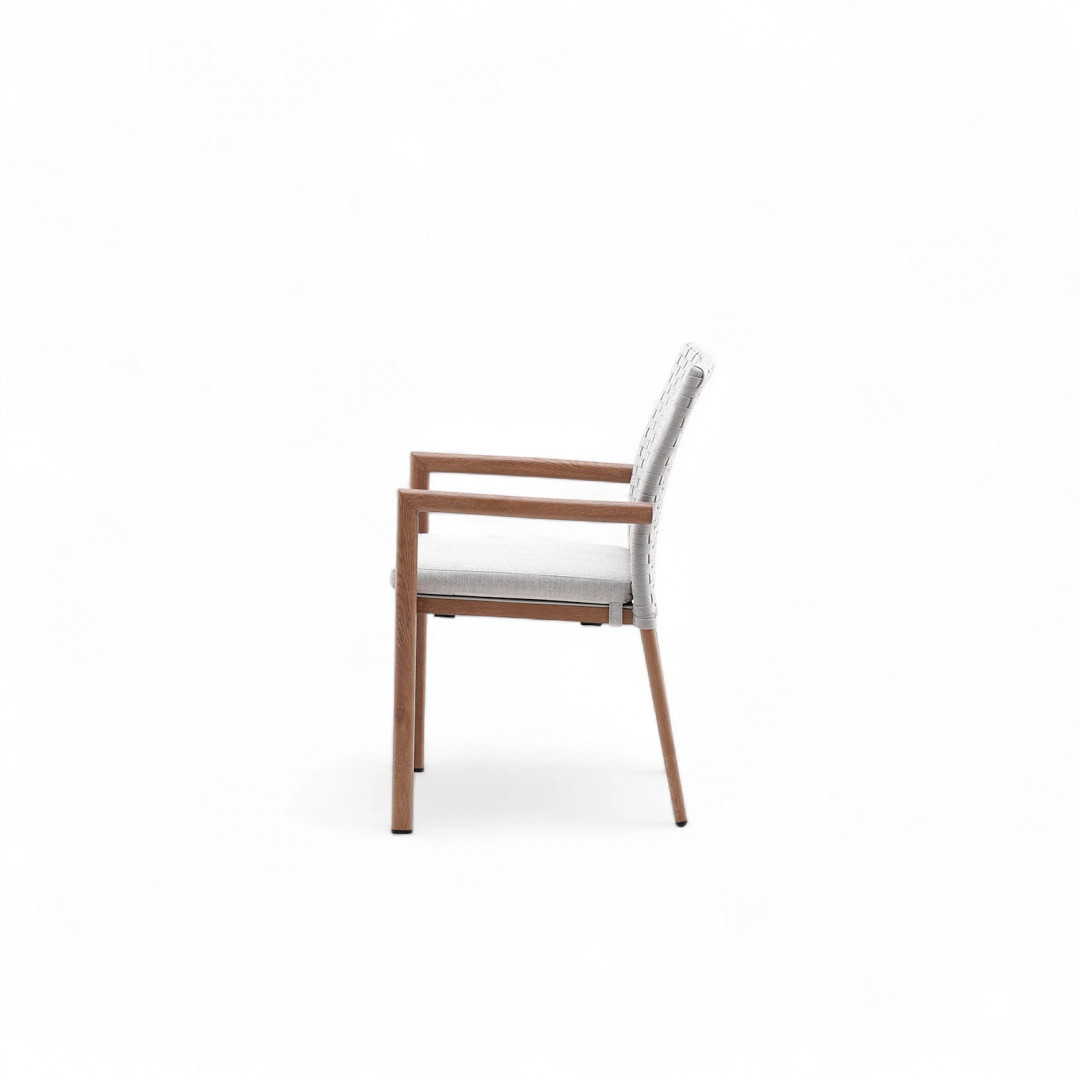 Кресло Lounge — квинтэссенция современной элегантности. Простые линии, нежные цвета и тщательно подобранные пропорции придают мебели эксклюзивный характер, идеально дополняющий как минималистичные патио, так и классические сады. Имитация дуба на алюминиевом каркасе подчеркивает естественную красоту комплекта, добавляя тепла и уюта.