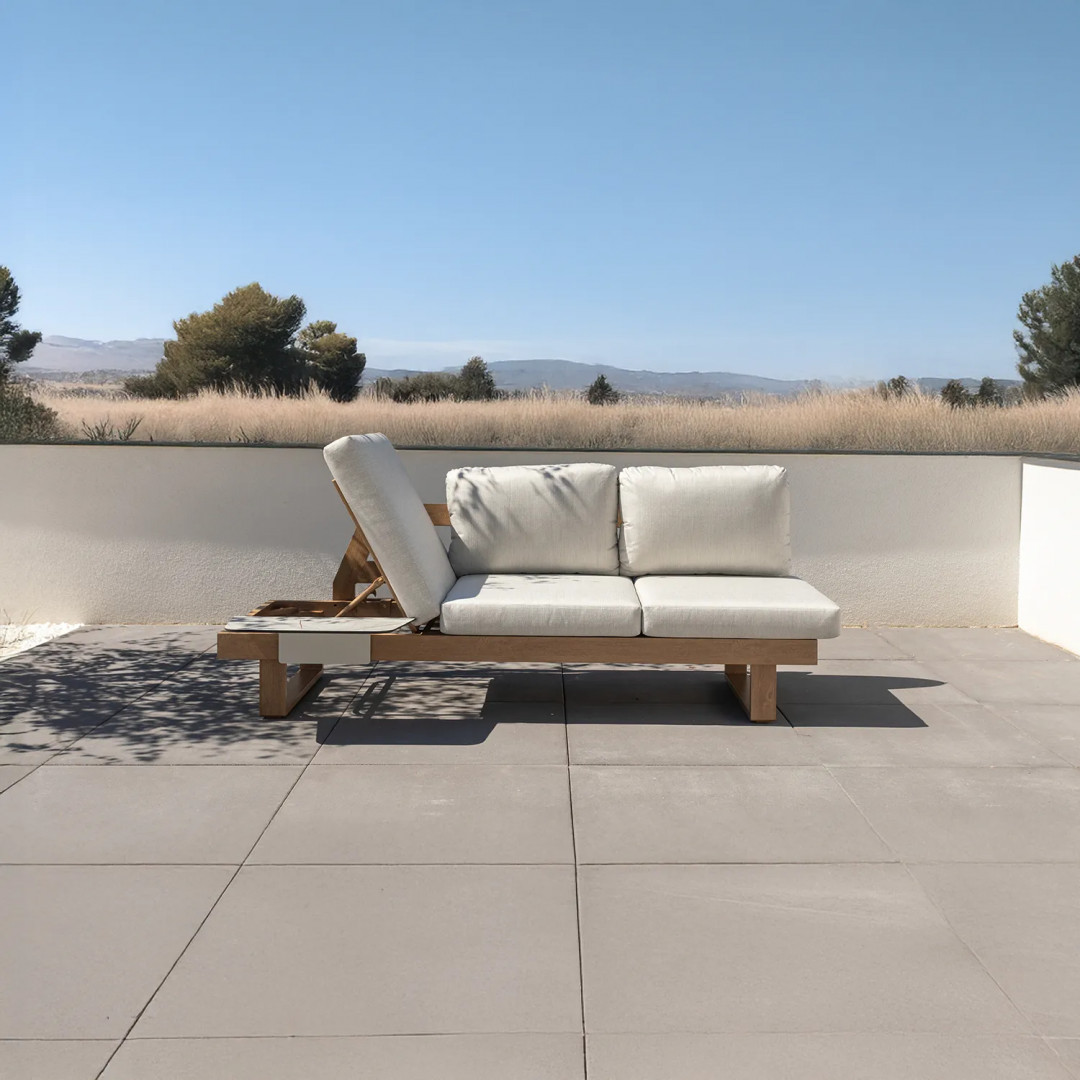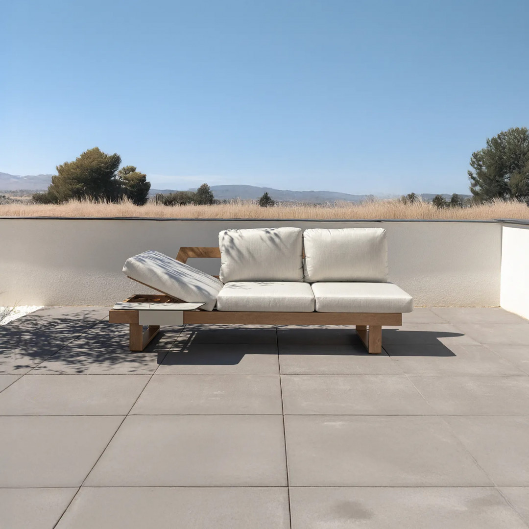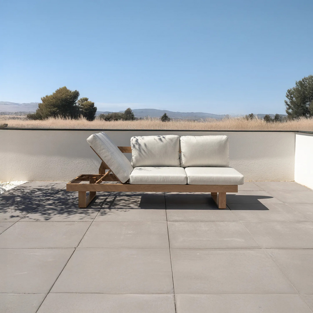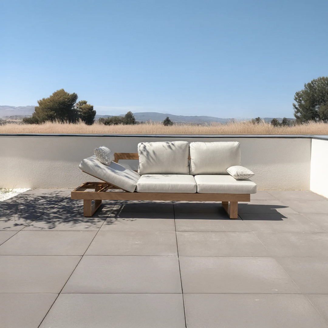 Диван для патио Wings – это уникальный предмет мебели из коллекции Couture Jardin, сочетающий современную эстетику с функциональностью, разработанной для динамичного образа жизни на открытом воздухе. Оснащенный инновационной системой боковой регулировки, он быстро трансформируется из классического дивана в удобные шезлонги с обеих сторон. Каркас из алюминия с порошковым покрытием, имитирующим натуральное дерево, и обивка светлого нейтрального оттенка создают гармоничное целое, идеально подходящее для террасы, патио или балкона.