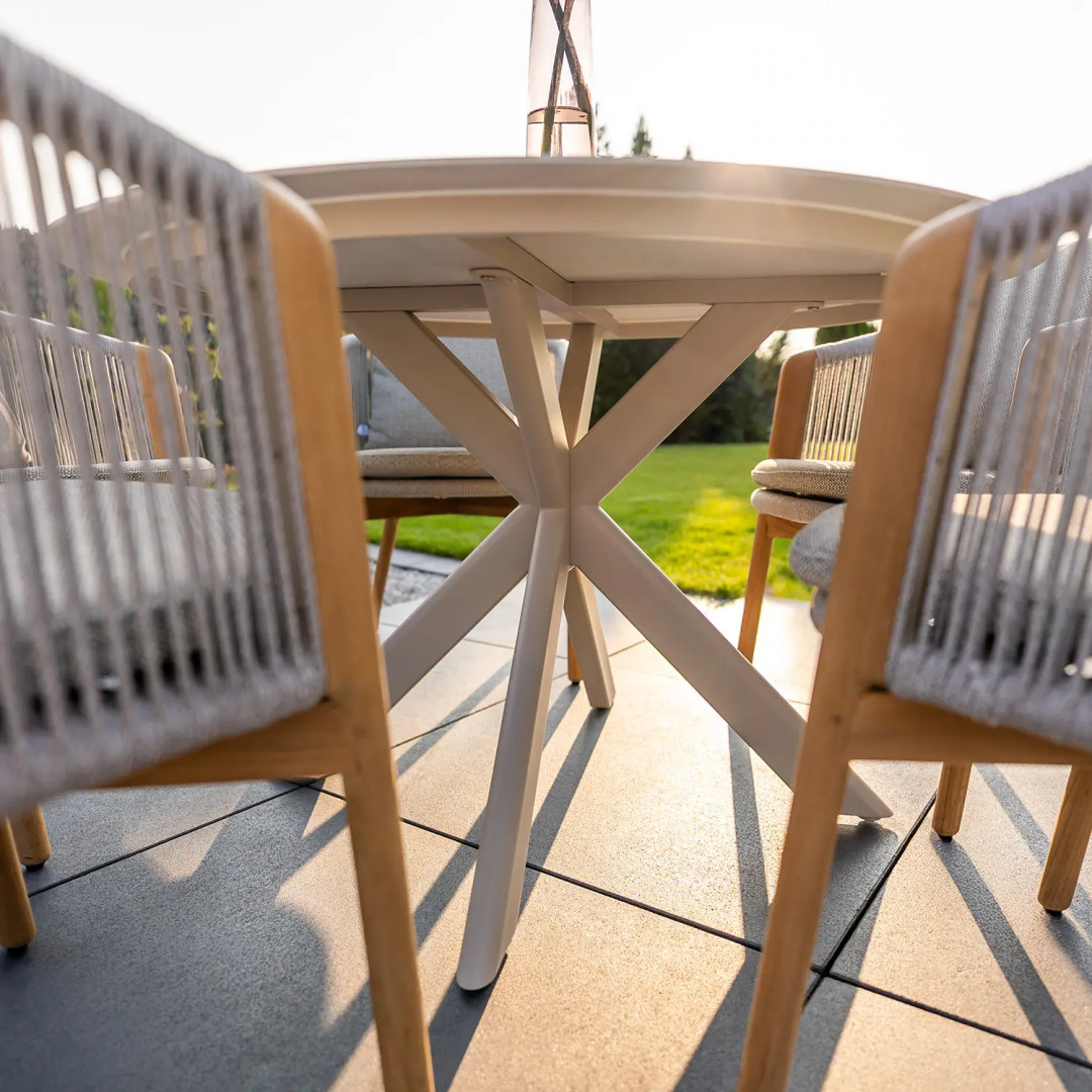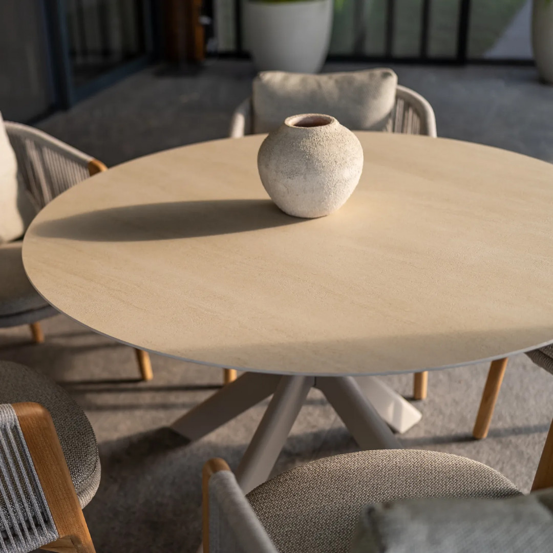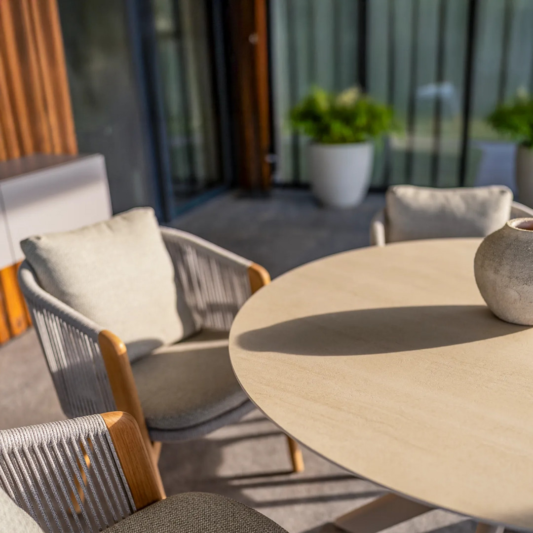 Простой, но изысканный дизайн стола LUGO мокка делает его центральным элементом вашей террасы или сада. Круглая столешница из керамики толщиной 6 мм гарантирует долговечность и простоту в уходе. Благодаря гладкой поверхности, для поддержания ее первозданного вида достаточно протереть ее влажной тканью. Алюминиевая рама с порошковым покрытием обеспечивает легкость конструкции, а также устойчивость к коррозии, влаге и изменениям погодных условий. Современная форма стола идеально сочетается как с минималистичными стульями, так и с более изысканной мебелью, добавляя гармонию и стиль в пространство.