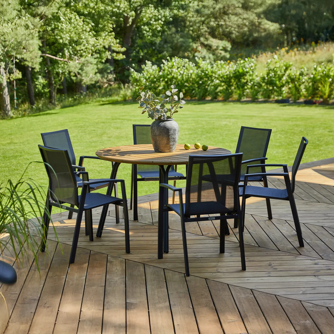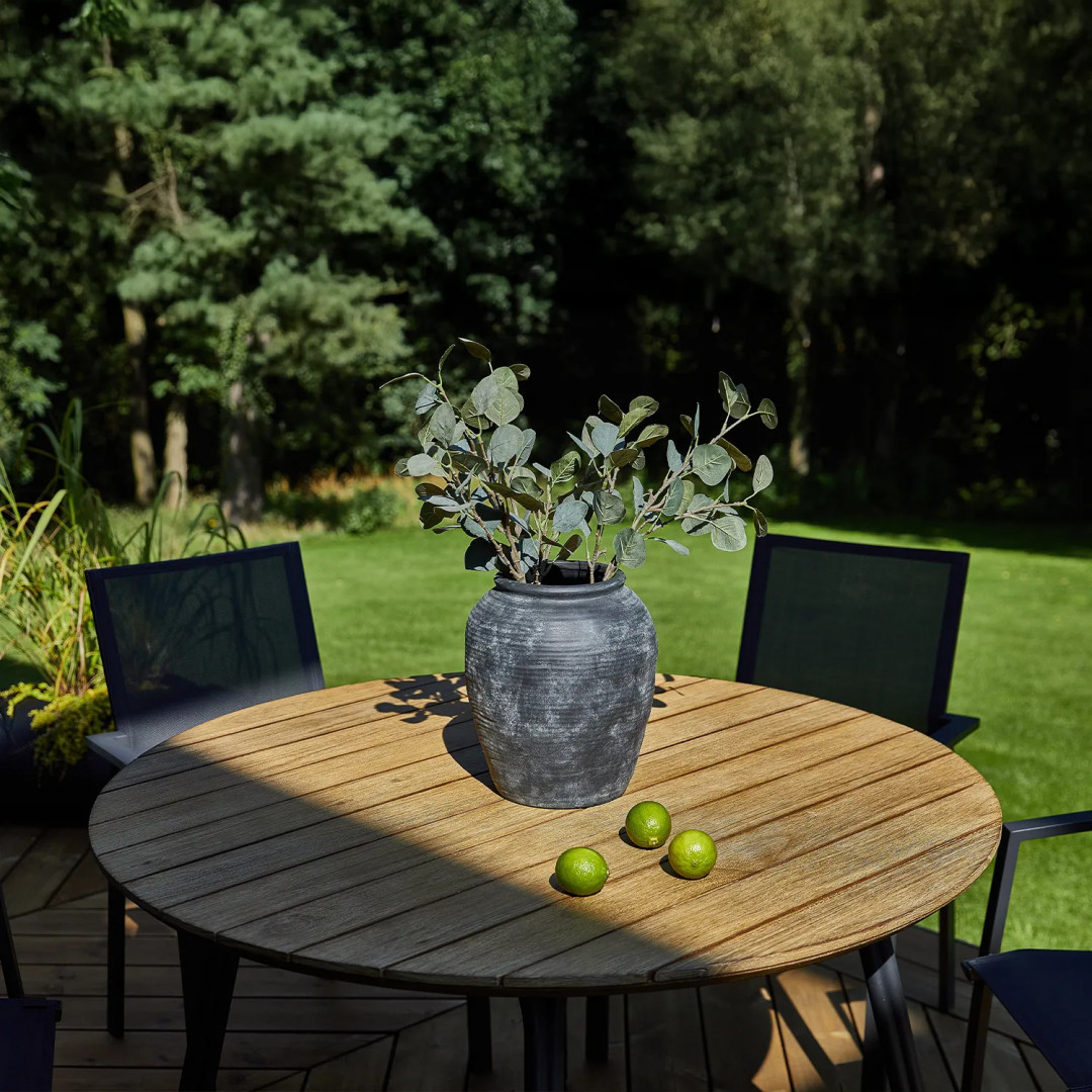 В долгие жаркие дни нет ничего вкуснее, чем еда на свежем воздухе. Мы ценим общение, хорошую еду и волшебство застолья, и именно стол объединяет нас. Даже на террасе жизнь может вращаться вокруг стола. Стол SIMI EUKALYPTUS — это уникальный и очень декоративный предмет мебели, который станет прекрасным дополнением к вашей террасе. Элегантный садовый стол интересной формы может стать центральным элементом, вокруг которого можно расставить кресла и садовые диваны. Круглый стол — отличное решение для совместных трапез. Его форма располагает к беседе с близкими за чашечкой ароматного кофе.