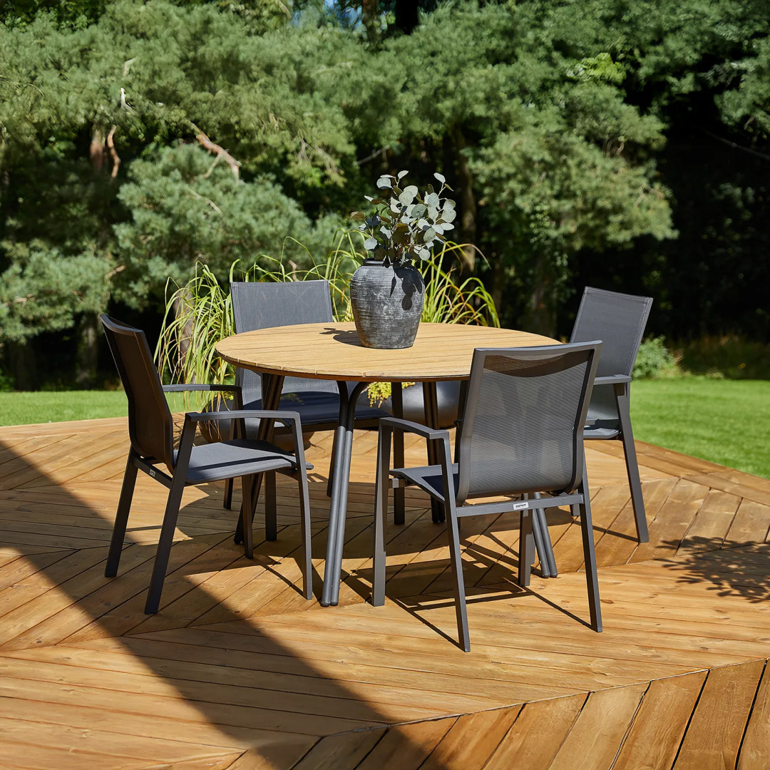 Классический и простой дизайн стола SIMI EUKALYPTUS — идеальный предмет мебели для любого сада или террасы. Круглый стол объединяет людей и создает расслабленную атмосферу во время еды. Круглая столешница — это вневременной элемент, который подходит к любому стилю. Она достаточно широка, чтобы с комфортом разместить подносы, блюда и центральные композиции. Круглая столешница изготовлена из высококачественной, долговечной древесины эвкалипта, отличающейся естественным видом и уникальным цветом. Столешница опирается на стальной каркас с покрытием, устойчивый к экстремальным температурам. Благодаря своей уникальной форме, стол дополняет как минималистичные стулья, так и стулья ярких цветов и форм. Он гармонично сочетает эстетику и функциональность. Это классика с современным акцентом. Так что вы можете сесть и насладиться моментом.
