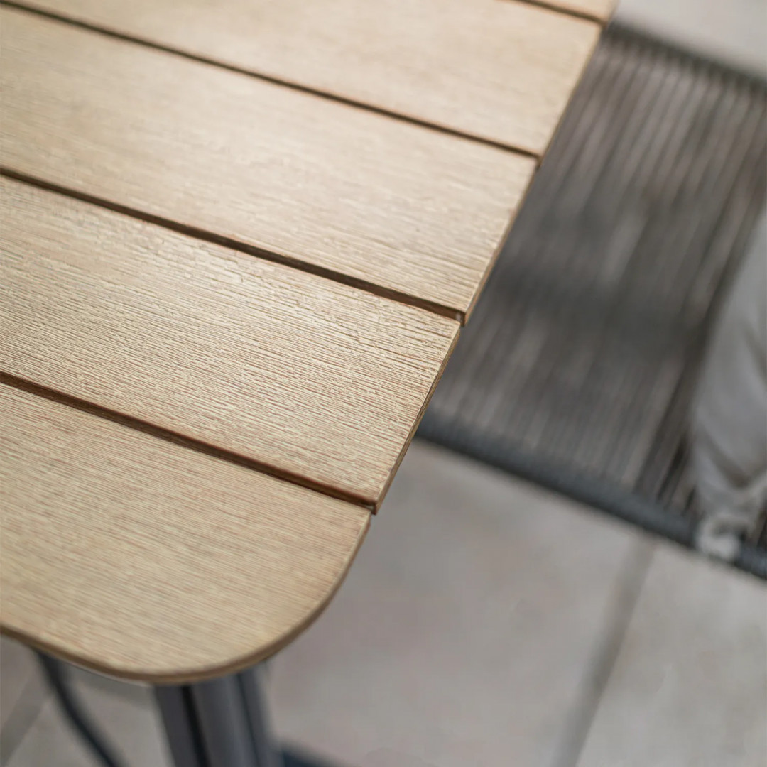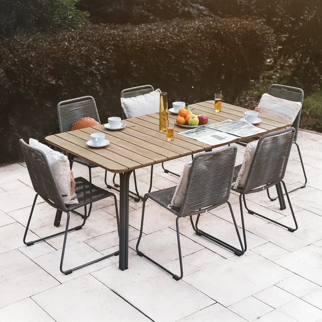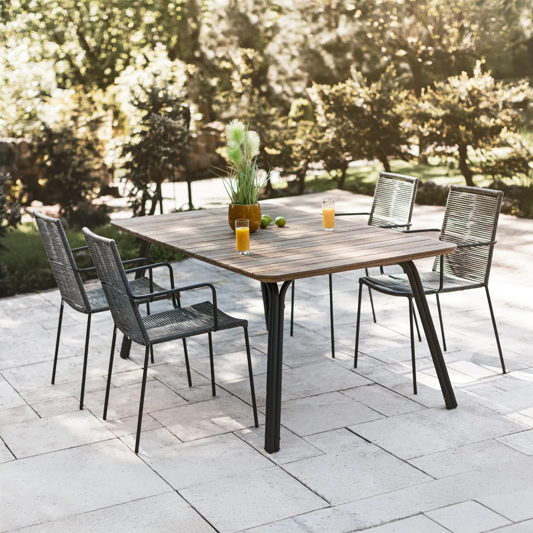 Садовый стол SIMI отличается современным дизайном, прочностью и функциональностью. Он изготовлен из эвкалиптовой древесины, одной из самых твердых пород в мире. Этот материал делает изделие исключительно устойчивым к механическим повреждениям и изменениям погодных условий. Прямоугольная форма стола позволяет комфортно обедать с близкими. Утренний кофе становится еще вкуснее в прекрасной обстановке природы, залитой приятными лучами восходящего солнца.