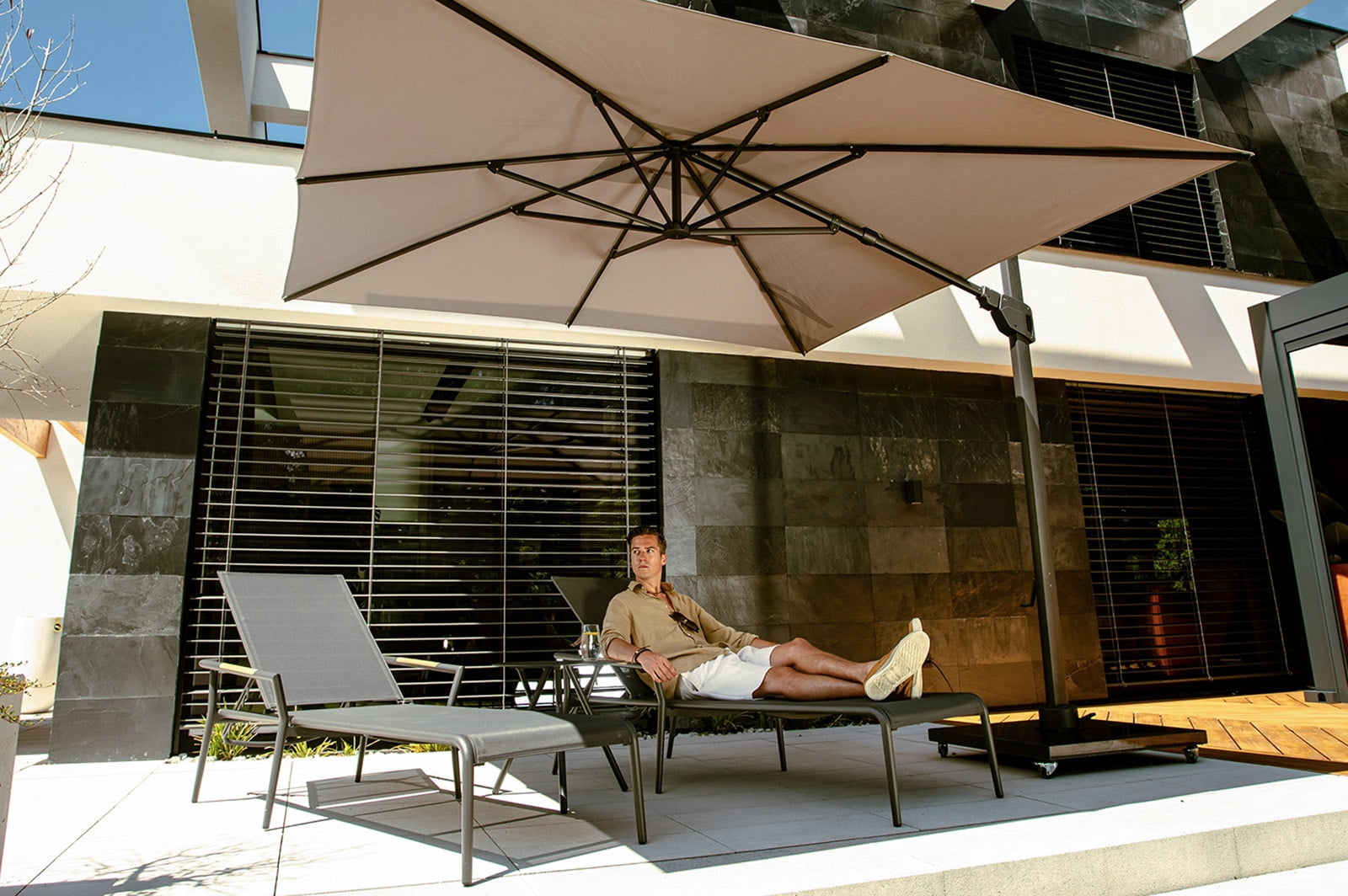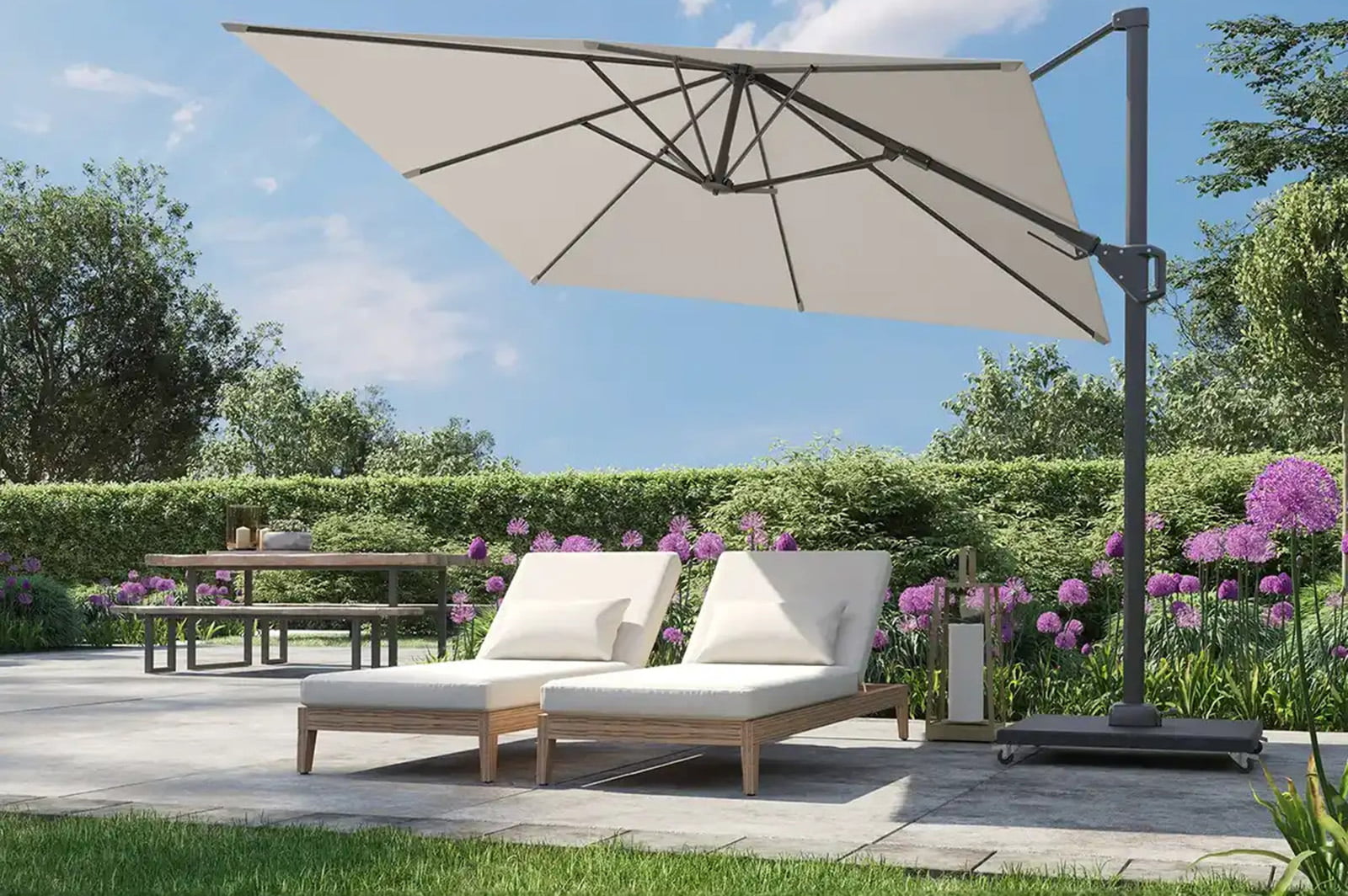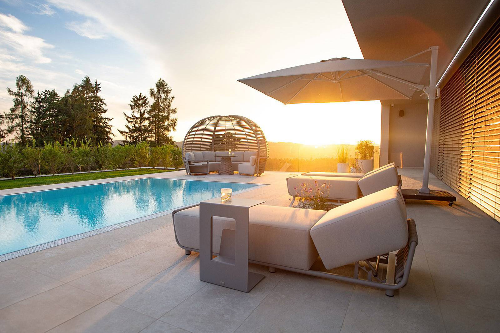 Подсказка: Если вам не хватает постоянной тени, установите стильный зонт с регулируемым куполом или даже небольшую перголу. Это поможет создавать комфортную атмосферу в любую погоду.
